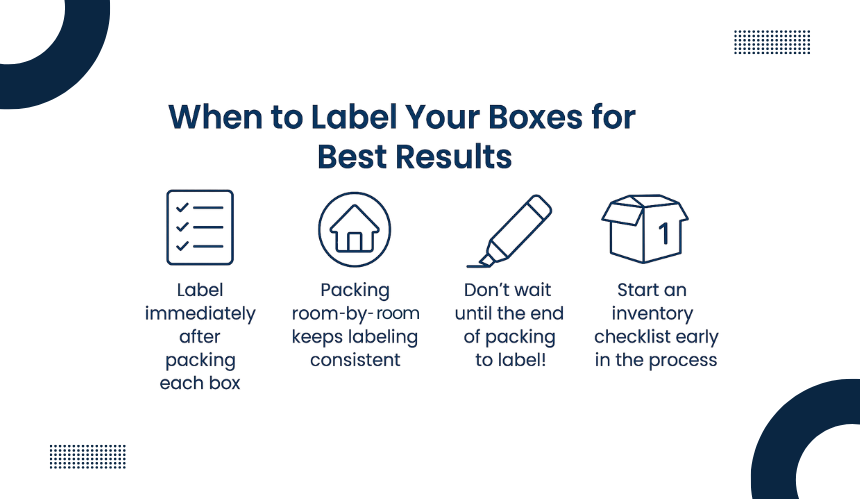 - Box Labels: Label each box with the room name and a short description of contents. Use waterproof markers or color-coded stickers to stay organized and speed up unpacking.