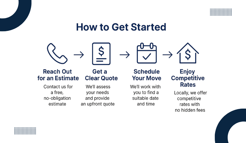 Getting started with A Great Moving Crew is quick and easy. To begin your moving journey, simply reach out to us for a free, no-obligation estimate. We’ll assess your needs and provide a clear, upfront quote that ensures there are no surprises.
