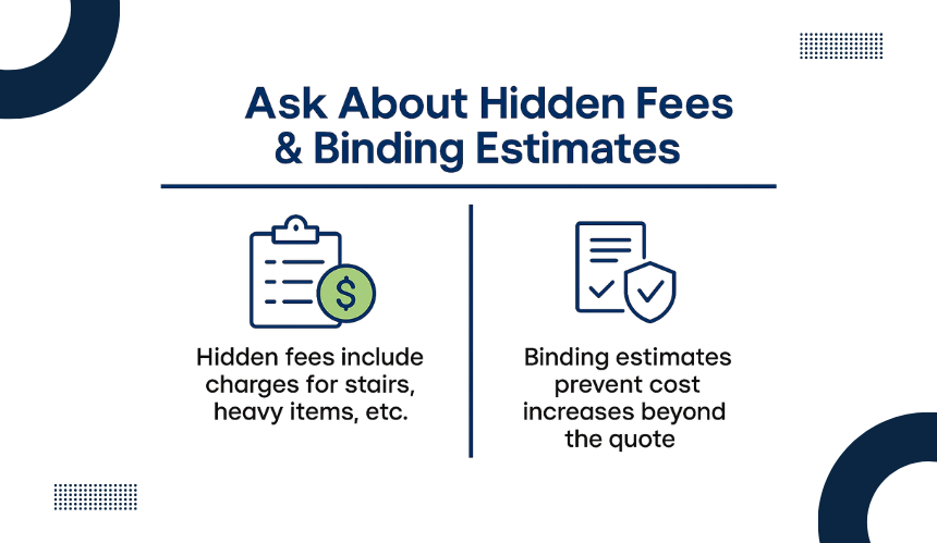 Make sure to ask for a comprehensive breakdown of potential extra charges upfront, such as for packing materials, handling fragile items, or dealing with difficult access points at your new home.