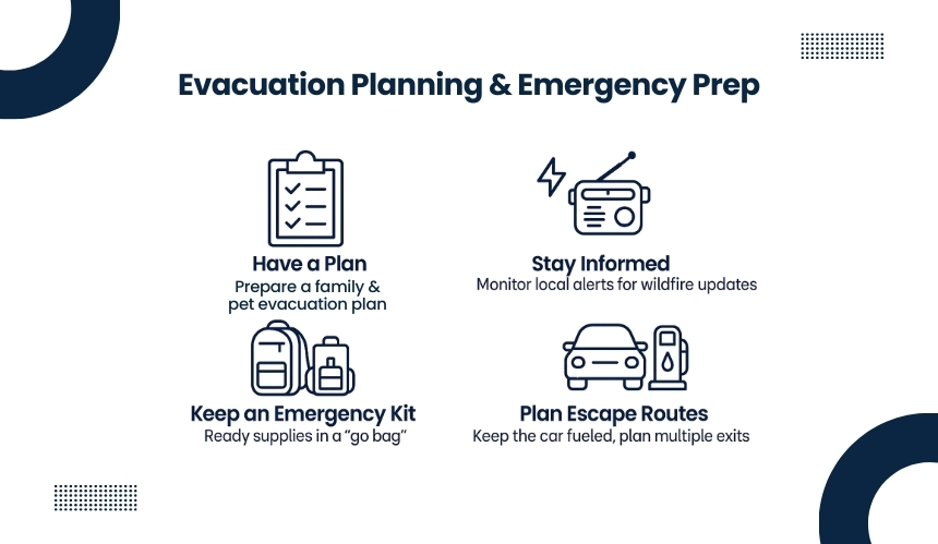 - Know Evacuation Routes: Plan multiple evacuation routes in case one is blocked. Your local fire department or emergency services can provide updated information on the safest routes.