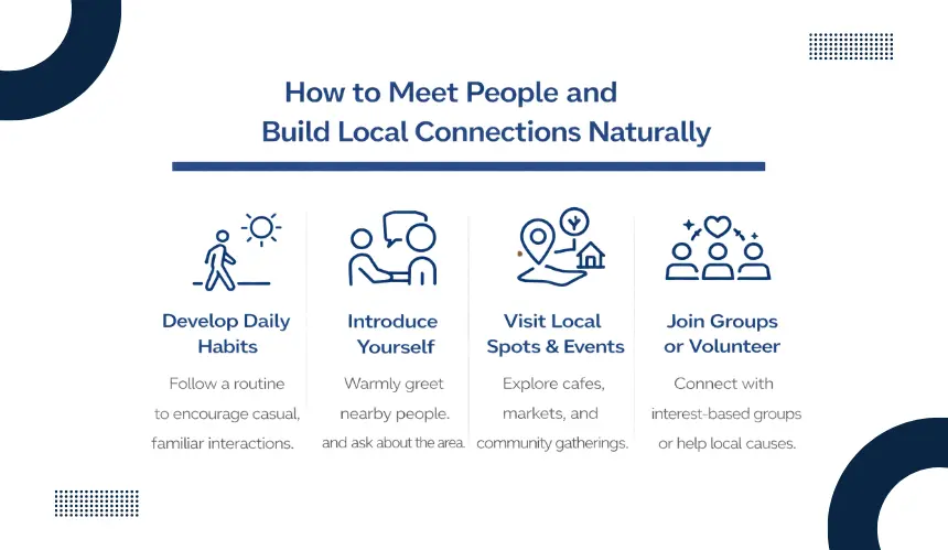 Don’t stress. This guide focuses on practical, search-intent driven steps that help new residents meet neighbors, understand local culture, and form relationships that genuinely feel meaningful.