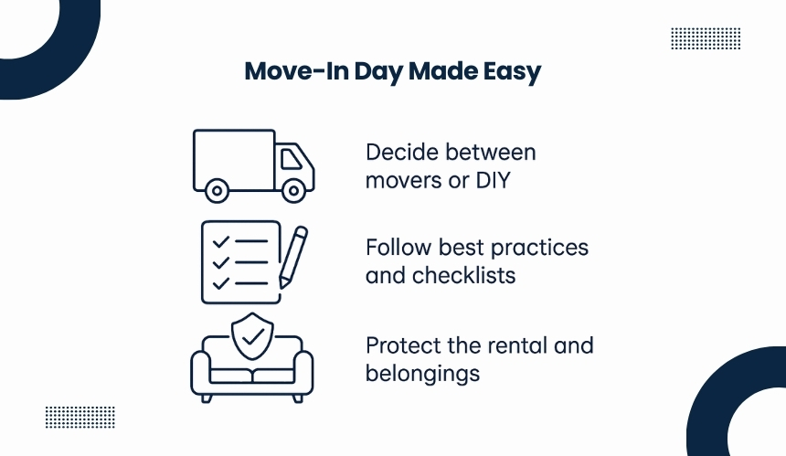 Start early in the morning to avoid delays and give yourself extra time for unexpected issues. Keep water, snacks, and basic tools within reach. Have a checklist that includes keys, lease documents, and any payment details for movers.