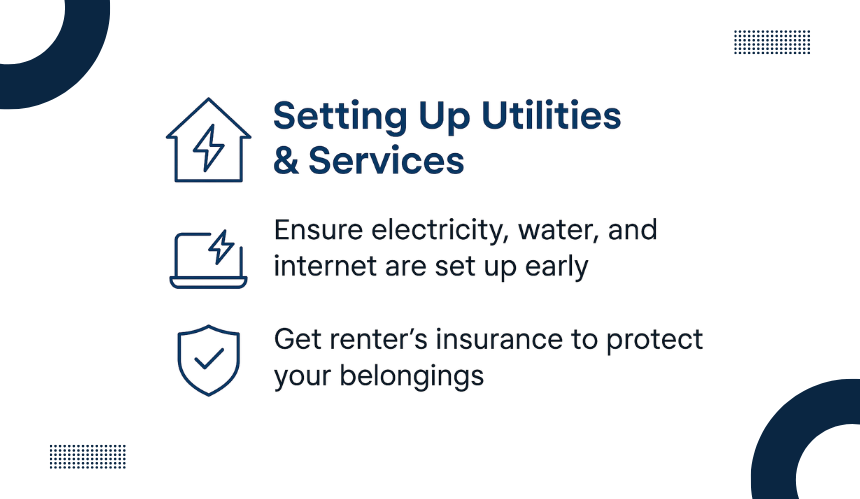 Within the first week, ensure your new place has electricity, water, internet, and waste collection. Contact local providers in advance so that services are active when you move in.