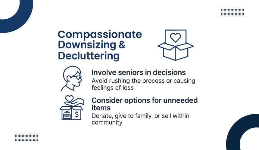 Decluttering should never feel rushed or forced. Seniors may hold deep emotional connections to household items, furniture, or keepsakes. Families should involve them in every decision to avoid feelings of loss or exclusion.