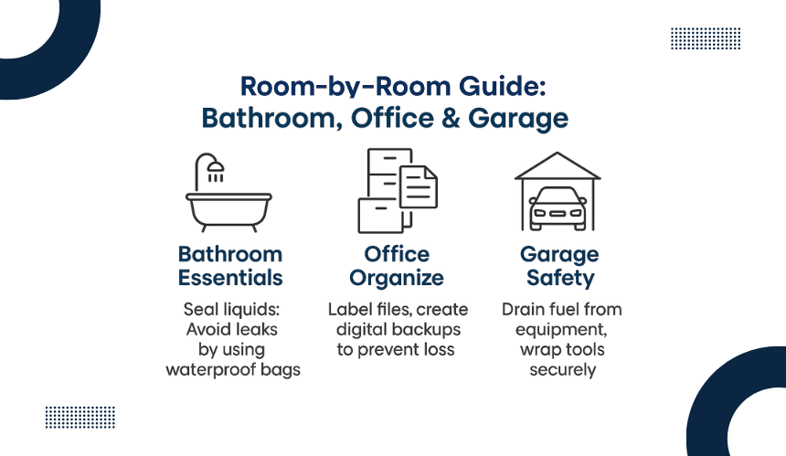 - Create a Packing Timeline: Pack in order of priority. Start with rarely used rooms, such as guest rooms or storage, and leave essentials like the kitchen and bathroom for last. This keeps daily life uninterrupted while you pack.