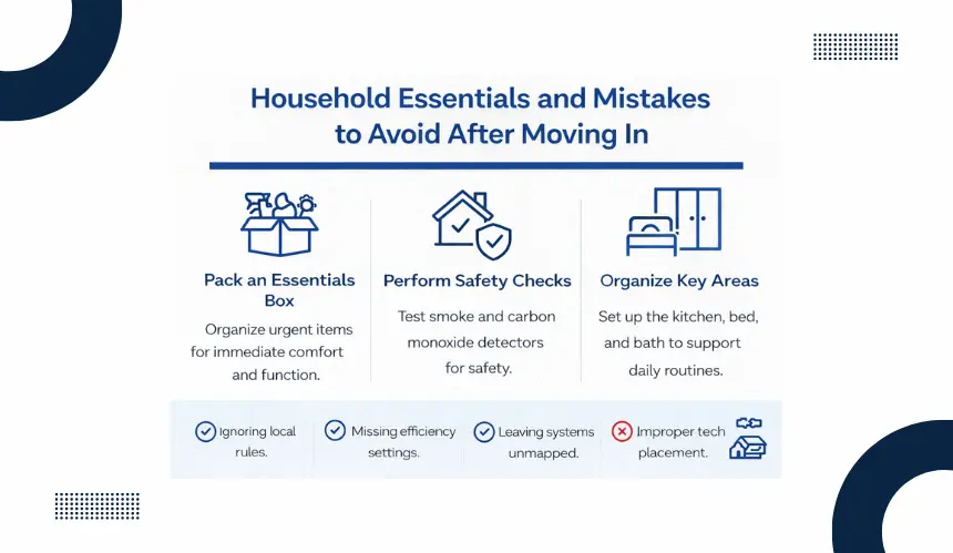 After utilities and internet are in place, the next step is preparing the essentials that help the home feel comfortable and functional. Organizing key items during the first days supports smoother routines and reduces stress as you unpack and adjust to the new environment.
