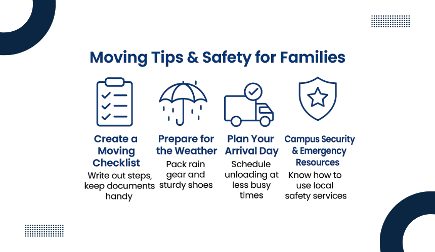 Move-in weekends around the University District can be congested. Arriving early or scheduling unloading during quieter hours makes the process faster. For off-campus rentals, confirm move-in times with landlords to avoid last-minute delays.