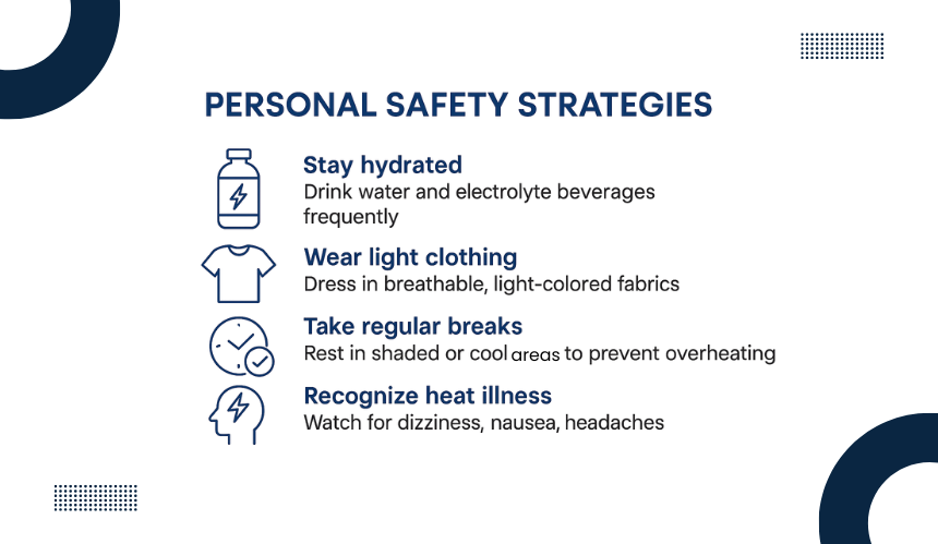Understanding early symptoms of heat stress is critical. Headaches, dizziness, nausea, excessive sweating, or muscle cramps may indicate dehydration or heat exhaustion.