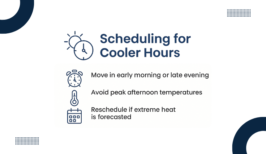 The timing of your move plays a crucial role in reducing heat-related risks. By planning around weather conditions and peak temperature hours, you can make the process safer and less exhausting for everyone involved.