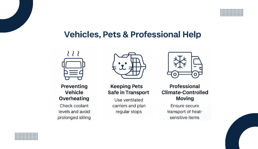 Vehicles and transportation play a critical role in a move, and hot weather creates additional challenges. From protecting your car to ensuring the safety of pets and perishable items, planning ahead prevents breakdowns and unnecessary stress.